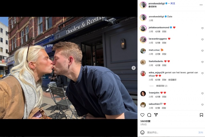 德里赫特与AnneKee去年6月举行了婚礼,之后AnneKee也随德里赫特搬到了曼市,两人从德里赫特十几岁还效力于阿贾克斯时就开始交往。